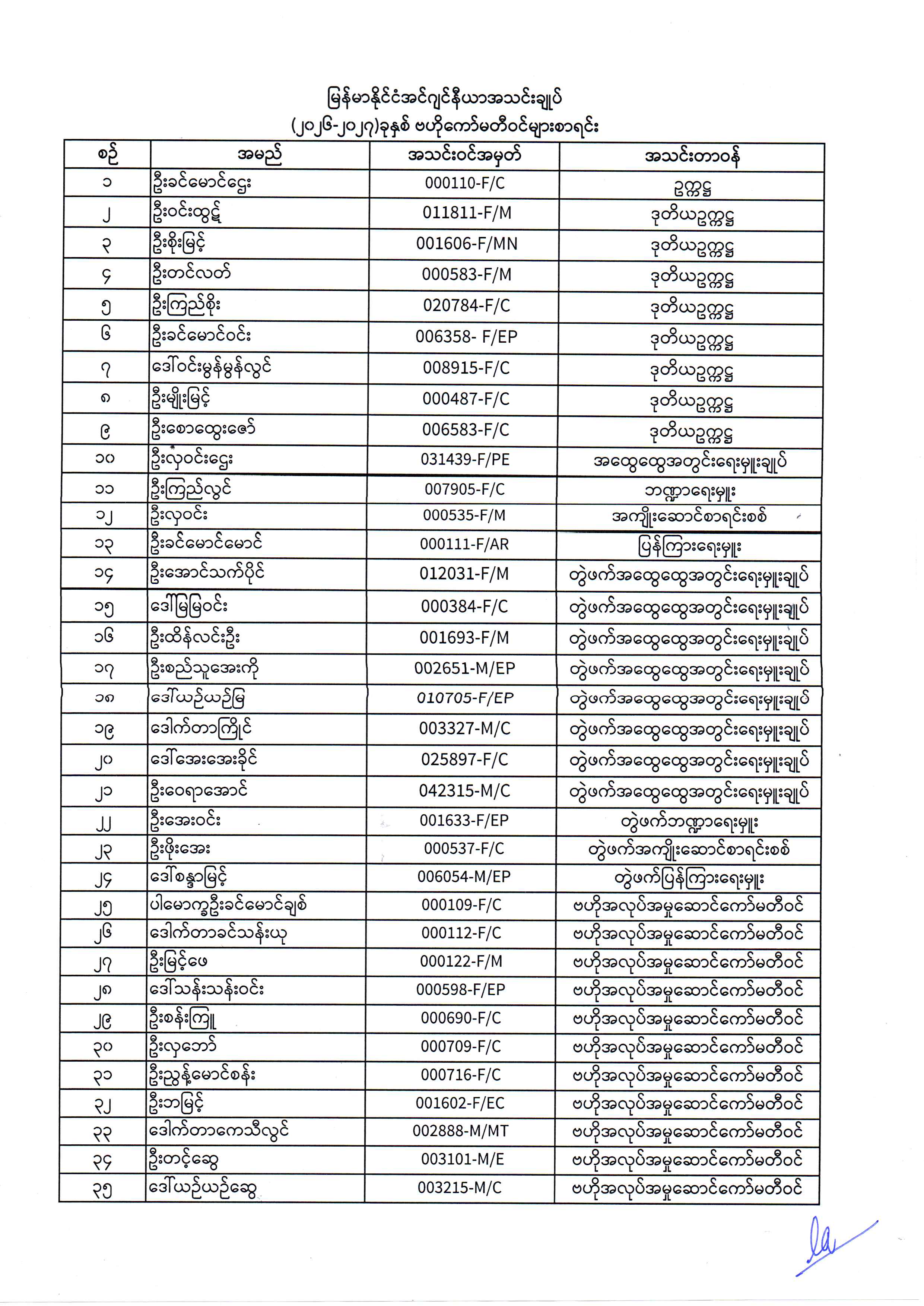 (2024-2025) Central Committee List