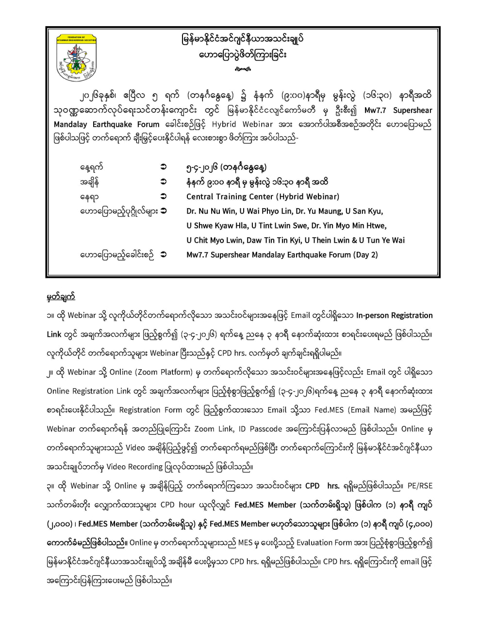 4-4-2026, Hybrid (Function Hall, Fed.MES Building, Hlaing Universities' Campus & Virtual Zoom Platform)